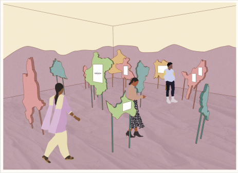 Inspired by the pre-partition India lines, the borders make up standing boards which host information.
